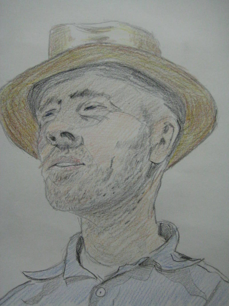 Potloodtekening afm. 30 x 40 cm. Titel: huisschilder de Blauwe. d.d. 8-10-2023